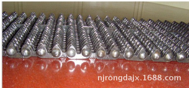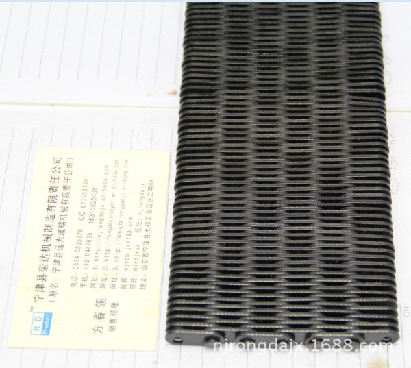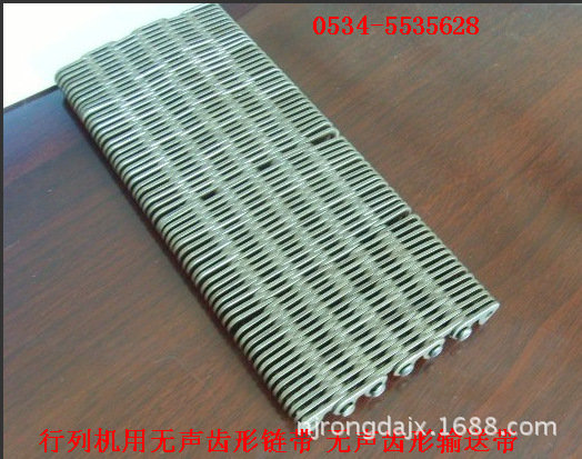 無(wú)聲齒形鏈帶:一種輸送帶,是玻璃廠或者陶瓷制品廠用來(lái)輸送玻璃制品器皿,玻璃容器或者陶瓷廠用來(lái)輸送陶瓷瓶罐,陶瓷制品的輸送帶。利用無(wú)聲鏈輪帶動(dòng),具有無(wú)噪音,耐磨,抗拉伸,輸送面平穩(wěn),耐高溫。