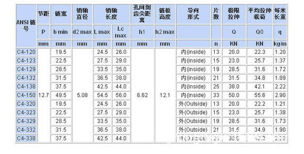 第二:無(wú)聲齒形鏈條節(jié)距型號(hào)7種。無(wú)聲鏈條型號(hào)多,具體有9.525毫米,12.7毫米,15.875毫米,19.05毫米,25.4毫米,31.75毫米,38.1毫米。無(wú)聲鏈帶經(jīng)常用的就兩種節(jié)距,一種是12.7毫米,一種是25.4毫米。