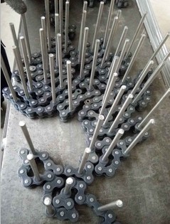 加長(zhǎng)銷軸鏈條:一種把鏈條的銷軸加長(zhǎng)的鏈條,可以單側(cè)加長(zhǎng),雙側(cè)加長(zhǎng),加長(zhǎng)銷軸上打孔。我們做的加長(zhǎng)銷軸鏈條有A B系列加長(zhǎng)銷軸鏈條和雙節(jié)距直板大滾子輸送鏈條。加長(zhǎng)銷軸鏈條就是把一般的鏈條的銷軸加長(zhǎng),用來(lái)固定其他附件。