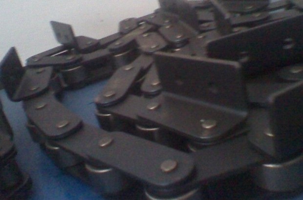 首先我們介紹一下彎板鏈條 彎板鏈條就是在原來鏈條的上面加上附件,也稱作耳朵,彎板鏈條可以是有單耳的、雙耳的,單孔的、雙孔的,雙側外片或內(nèi)外片帶彎板的,材質有碳鋼的、不銹鋼的,錳鋼的,質量第一、發(fā)貨及時!滾珠有鐵的 尼龍的等,是非標定做的。