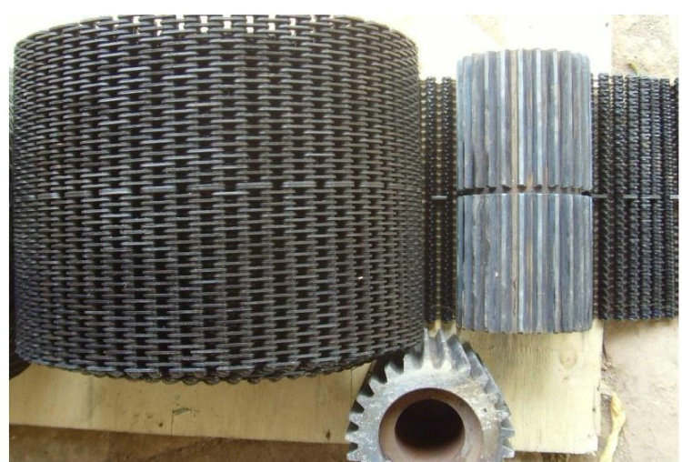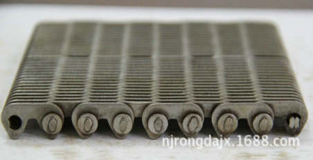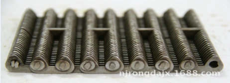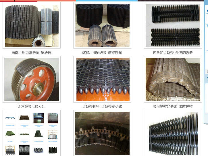 無(wú)聲齒形鏈帶:一種輸送帶,是玻璃廠或者陶瓷制品廠用來(lái)輸送玻璃制品器皿,玻璃容器或者陶瓷廠用來(lái)輸送陶瓷瓶罐,陶瓷制品的輸送帶。利用無(wú)聲鏈輪帶動(dòng),具有無(wú)噪音,耐磨,抗拉伸,輸送面平穩(wěn),耐高溫。