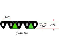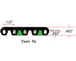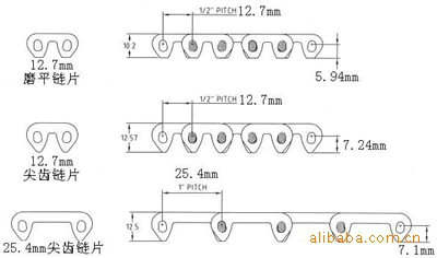第二:無聲齒形鏈條節(jié)距型號7種。無聲鏈條型號多,具體有9.525毫米,12.7毫米,15.875毫米,19.05毫米,25.4毫米,31.75毫米,38.1毫米。無聲鏈帶經常用的就兩種節(jié)距,一種是12.7毫米,一種是25.4毫米。