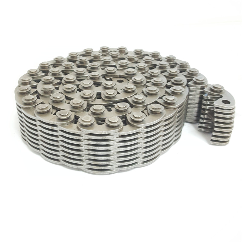 齒形鏈?zhǔn)且环N應(yīng)用廣泛的重要機(jī)械基礎(chǔ)件,主要用在高速、重載、低噪音、大中心距的工況下,其傳動(dòng)性能優(yōu)于齒形帶傳動(dòng)、齒輪傳動(dòng)以及滾子傳動(dòng),以成為眾多行業(yè)首選對傳動(dòng)形式之一,以嚙合形式分可分為內(nèi)嚙合齒形鏈、外嚙合齒形鏈和內(nèi)外復(fù)合嚙合齒形鏈,其中內(nèi)外復(fù)合嚙合齒形鏈的噪音最小,應(yīng)用也最廣泛。