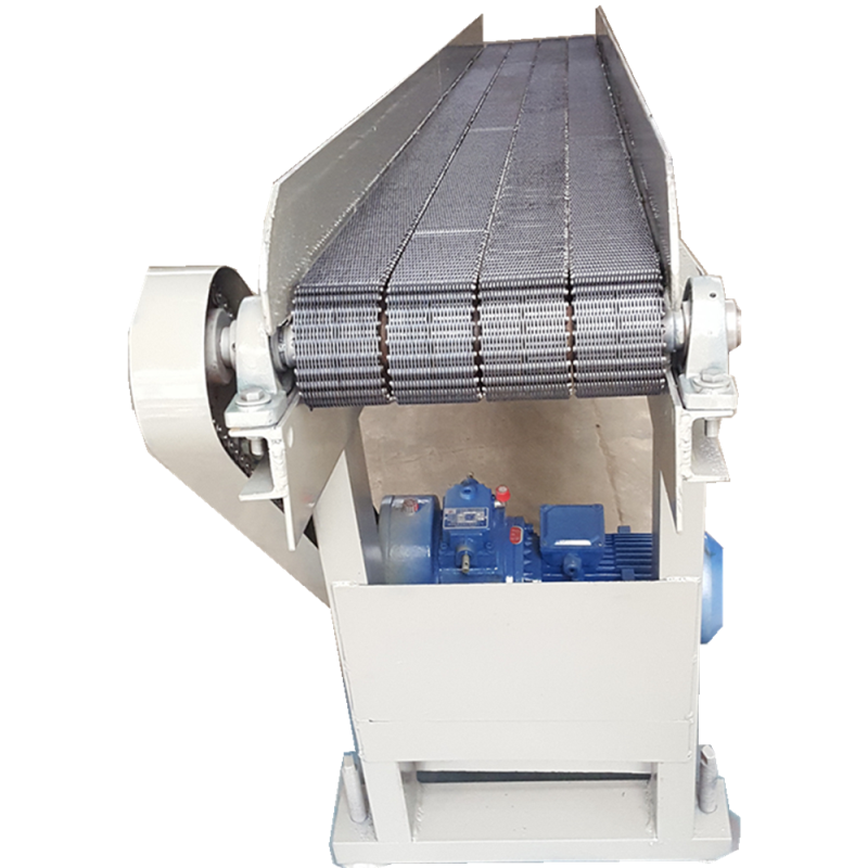 (4)合頁鏈板輸送機,采用合頁鏈板輸送帶,能解決尖的小的鍛造件的輸送機。如果加大輸送帶規(guī)格做成大規(guī)格輸送帶,也能輸送大鍛造件。