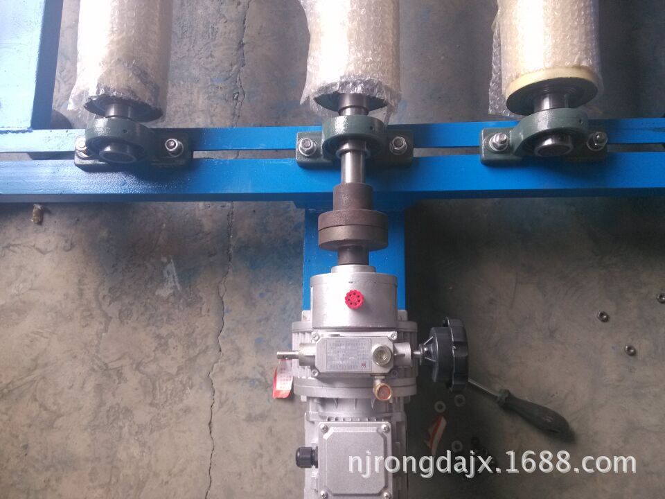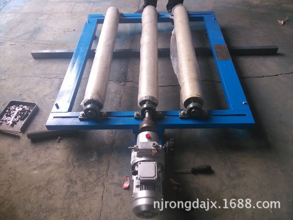 2016年給合肥做的滾軸機(jī)械,是用來滾瓶子的,瓶子里裝有液體,通過轉(zhuǎn)動瓶子,液體被混合均勻,長度1米,寬度70公分,高度750毫米,滾筒直徑89毫米,包膠,綠色膠,滾筒的兩根能夠轉(zhuǎn)動,兩根不能轉(zhuǎn)動,滾筒的間距能調(diào)節(jié),6500元一臺