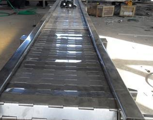 6、運行平穩(wěn)可靠;鏈板輸送機(jī):又叫鏈板傳送機(jī),鏈板線,鏈板傳送帶。是一種利用循環(huán)往復(fù)的鏈條作為牽引動力,以金屬板作為輸送承載體的一種輸送機(jī)械設(shè)備。國內(nèi)市場上有兩種鏈板輸送機(jī),一種是用鏈條,支軸和金屬板組成的輸送鏈板做成的輸送機(jī);一種是用帶彎板的鏈條和金屬板組成的金屬板輸送帶做成的鏈板輸送機(jī),另一種是平頂鏈鏈板輸送機(jī)。