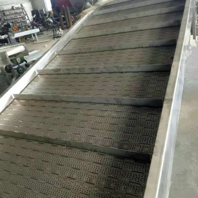 1,如果輸送機是提升機,是傾斜爬坡輸送機,輸送的時候帶角度提升輸送,盡量在輸送帶上加上橫擋板,在輸送帶上加上防滑隔板。