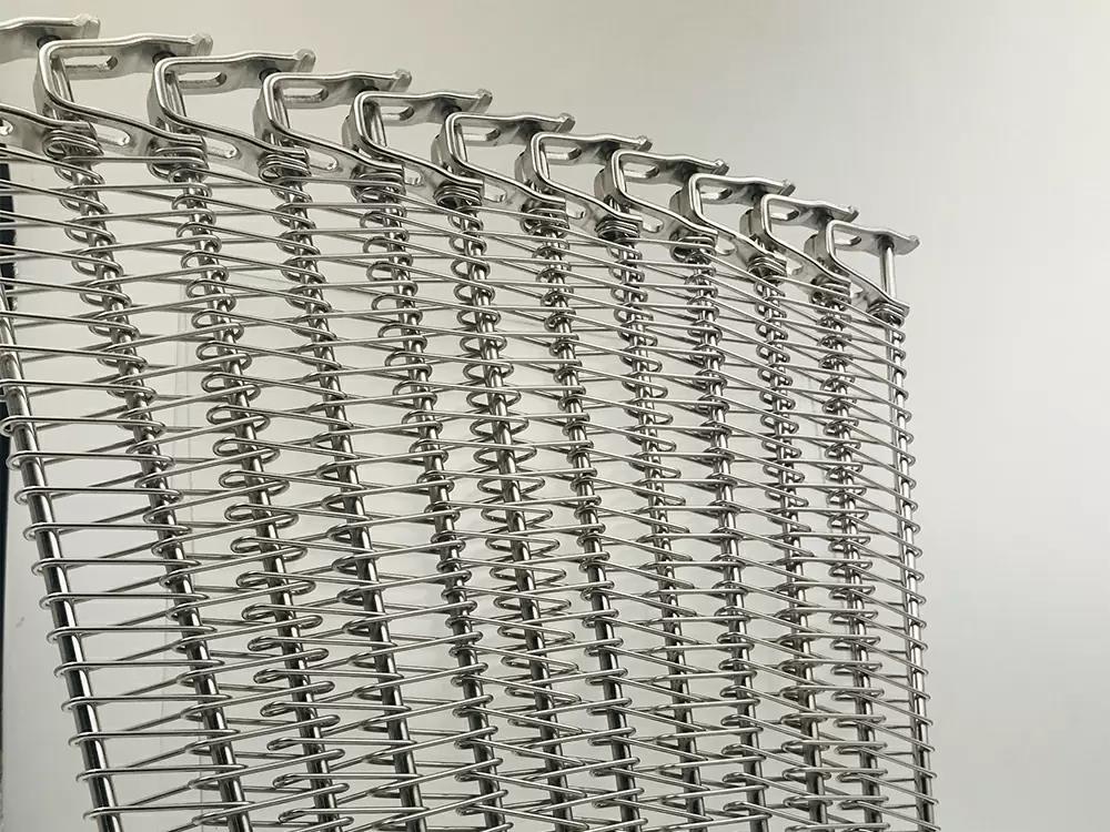 螺旋網(wǎng)采用高抗拉不銹鋼絲經(jīng)進(jìn)口數(shù)控網(wǎng)帶成型機(jī)加工生產(chǎn),網(wǎng)面強硬耐用,不易變形。網(wǎng)面平整,焊接牢固,轉(zhuǎn)彎性能好,可以實現(xiàn) 180度和360度的轉(zhuǎn)彎??梢猿休d較重的壓力和拉力,維修和拆卸極為方便,可以根據(jù)應(yīng)用設(shè)計網(wǎng)面有絲網(wǎng),網(wǎng)面無絲網(wǎng),網(wǎng)帶兩側(cè)加裝擋板或者網(wǎng)帶中間加裝鏈條。