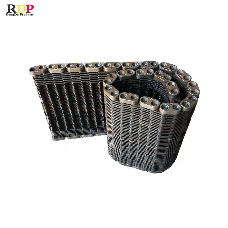 齒形鏈?zhǔn)且环N應(yīng)用廣泛的重要機(jī)械基礎(chǔ)件,主要用在高速、重載、低噪音、大中心距的工況下,其傳動性能優(yōu)于齒形帶傳動、齒輪傳動以及滾子傳動,以成為眾多行業(yè)首選對傳動形式之一,以嚙合形式分可分為內(nèi)嚙合齒形鏈、外嚙合齒形鏈和內(nèi)外復(fù)合嚙合齒形鏈,其中內(nèi)外復(fù)合嚙合齒形鏈的噪音最小,應(yīng)用也最廣泛