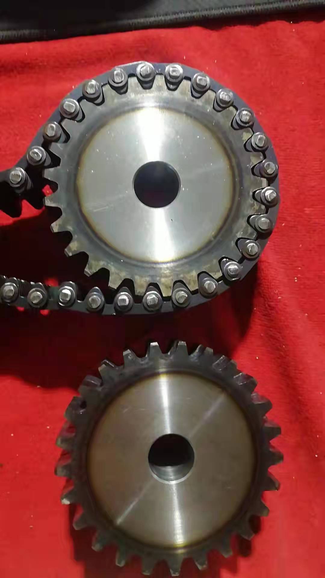 齒形鏈又稱無聲鏈(Silent Chain),屬于傳動(dòng)鏈的一種形式。我國(guó)的國(guó)家標(biāo)準(zhǔn)為:GB/T10855-2003《齒形鏈和鏈輪》。齒形鏈?zhǔn)怯梢幌盗械凝X鏈板和導(dǎo)板交替裝配且銷軸或組合的鉸接元件連接組成,相鄰節(jié)距間為鉸連節(jié)。根據(jù)導(dǎo)向型式可分為:外導(dǎo)式齒形鏈、內(nèi)導(dǎo)式齒形鏈和雙內(nèi)導(dǎo)齒形鏈.齒形鏈又稱無聲鏈,屬于傳動(dòng)鏈的一種形式。齒形鏈?zhǔn)且环N應(yīng)用廣泛的重要機(jī)械基礎(chǔ)件,主要用在高速、重載、低噪音、大中心距的工況下,其傳動(dòng)性能優(yōu)于齒形帶傳動(dòng)、齒輪傳動(dòng)以及磙子鏈傳動(dòng),以成為眾多行業(yè)首選對(duì)傳動(dòng)形式之一,以嚙合形式分可分為內(nèi)嚙合齒形鏈、外嚙合齒形鏈和內(nèi)外復(fù)合嚙合齒形鏈,其中內(nèi)外復(fù)合嚙合齒形鏈的噪音最小,應(yīng)用也最廣泛。主要特點(diǎn):1.噪音小 齒形鏈?zhǔn)峭ㄟ^工作鏈板與鏈輪齒的漸開線齒形進(jìn)行嚙合傳遞動(dòng)力,與滾子鏈和套筒鏈相比其多邊形效應(yīng)明顯降低,沖擊小、運(yùn)動(dòng)平穩(wěn)、嚙合噪音較小。2.可靠性較高 齒形鏈的鏈節(jié)是多片式結(jié)構(gòu),當(dāng)其中個(gè)別鏈片在工作中遭到破壞時(shí)并不影響整根鏈條的工作,使人們能夠及時(shí)發(fā)現(xiàn)并更換,如需增加承載能力只需在寬度方向較小尺寸(增加鏈片排數(shù))。3.運(yùn)動(dòng)精度高 齒形鏈各鏈節(jié)磨損伸長(zhǎng)均勻,可保持較高的運(yùn)動(dòng)精度。齒形鏈條主要應(yīng)用范圍:齒形鏈主要應(yīng)用在紡織機(jī)械和無心磨床,傳送帶機(jī)械設(shè)備。齒形鏈條的種類:CL06,CL08,CL10,CL12,CL16,CL20。根據(jù)導(dǎo)向分:內(nèi)導(dǎo)的齒形鏈條和外導(dǎo)的齒形鏈條,內(nèi)外復(fù)合的齒形鏈條