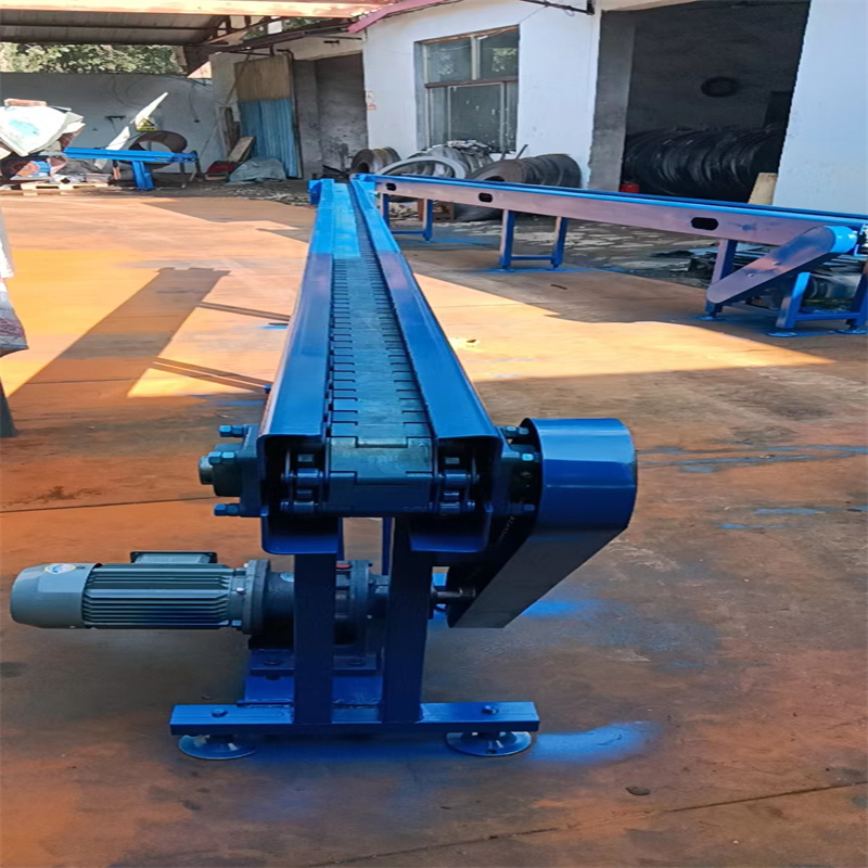 鏈板式輸送機(jī),利用固接在牽引鏈上的一系列鏈板在水平或傾斜方向輸送物料的輸送機(jī),以單片鋼板鉸接成環(huán)帶作為運(yùn)輸機(jī)的牽引和承載構(gòu)件承載面具有橫向隔片置于槽箱中驅(qū)動(dòng)環(huán)帶借隔片將煤刮運(yùn)輸出。它由驅(qū)動(dòng)機(jī)構(gòu)、張緊裝置、牽引鏈、板條、驅(qū)動(dòng)及改向鏈輪、機(jī)架等部分組成。在冶金、煤炭、化工、電力、機(jī)械制造及國(guó)民經(jīng)濟(jì)的其他工業(yè)部門中均得到了廣泛的應(yīng)用。