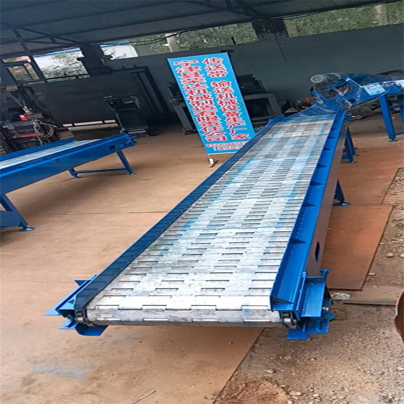 鏈板式輸送機,利用固接在牽引鏈上的一系列鏈板在水平或傾斜方向輸送物料的輸送機,以單片鋼板鉸接成環(huán)帶作為運輸機的牽引和承載構件承載面具有橫向隔片置于槽箱中驅動環(huán)帶借隔片將煤刮運輸出。它由驅動機構、張緊裝置、牽引鏈、板條、驅動及改向鏈輪、機架等部分組成。在冶金、煤炭、化工、電力、機械制造及國民經(jīng)濟的其他工業(yè)部門中均得到了廣泛的應用。