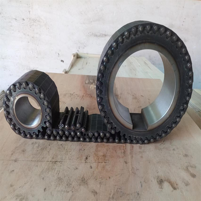無聲鏈 齒形鏈輪 無聲鏈:也叫齒形鏈條,采用無聲齒形鏈輪帶動運轉傳動。寧津縣榮發(fā)齒輪廠定做各種無聲齒形鏈條,無聲齒形鏈輪。我們根據(jù)客戶自己的情況,客戶選型成功,我們根據(jù)客戶的數(shù)據(jù)非標定做各種齒形鏈條和無聲齒形鏈輪。齒形鏈條節(jié)距4.7625,6.35 9.525 12.7 15.875 19.05 25.4 31.75 38.1毫米的鏈條都能做,無聲齒形鏈輪根據(jù)客戶的齒數(shù)和外徑,內孔,鍵槽定做。無聲齒形鏈條的獨特優(yōu)點:高速,無噪音,高承載傳動能力,轉矩大等等優(yōu)點,逐漸取代精密滾子鏈條和同步帶。