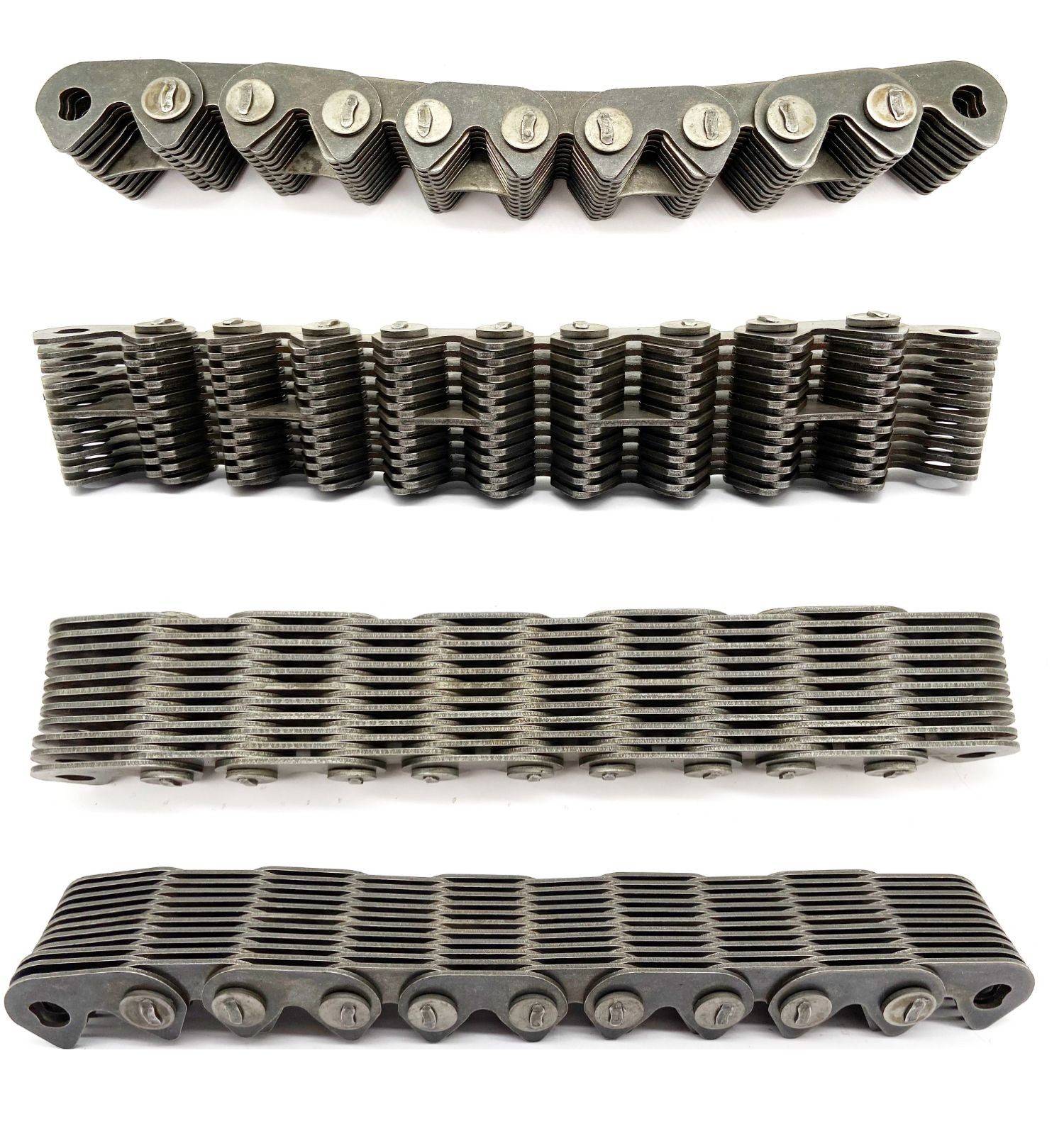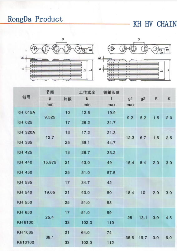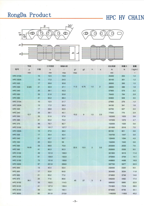 HDL585 哈瓦齒形鏈條 HDL325 無聲齒形鏈條 HDL650哈瓦齒形鏈條鏈輪 HDL3100 HDL1080 HDL550 齒形鏈條傳動有著噪音小,可靠性較高,運動精度高(其運轉平滑性強于任何其他類型的鏈條)等比較突出的特點,所有齒形鏈條已成為一種應用廣泛的重要基礎零件部件。特別是在高速,重載,低噪音要求,大中心距離的工況下,其傳動性能優(yōu)于齒形帶傳動,普通齒輪傳動及滾子鏈條傳動,齒形鏈條已經發(fā)展為汽車,機床,汽輪機,石油機械,軍用機械等眾多行業(yè)的傳動類型之一,如機床主傳動,發(fā)動機正時傳動及重要的操縱機構等等。另外齒形鏈條在高速運轉時,往往還要達到低噪音甚至靜音,所有齒形鏈條在許多場合還叫做靜音鏈條或者無聲鏈條,外導式齒形鏈條(圓銷式)內導齒形鏈條滾銷式 雙內導齒形鏈條 軸瓦襯瓦式齒形鏈條 雙面嚙合齒形鏈條 帶過渡彎板鏈節(jié)的齒形鏈條 單面齒形鏈條 雙面?zhèn)鲃育X形鏈條 傳動齒形鏈條目前國內使用的標準,GB/T 10855-2003,Inverted tooth silent chain and sprocket
