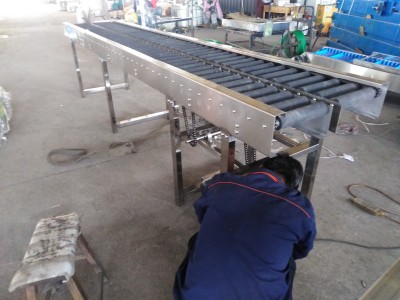 滾筒輸送機(jī)適用于各類箱、包、托盤等件貨的輸送,散料、小件物品或不規(guī)則的物品需放在托盤上或周轉(zhuǎn)箱內(nèi)輸送。能夠輸送單件重量很大的物料,或承受較大的沖擊載荷,滾筒線之間易于銜接過渡,可用多條滾筒線及其它輸送機(jī)或?qū)C(jī)組成復(fù)雜的物流輸送系統(tǒng),完成多方面的工藝需要??刹捎梅e放滾筒實(shí)現(xiàn)物料的堆積輸送。滾筒輸送機(jī)結(jié)構(gòu)簡(jiǎn)單,可靠性高,使用維護(hù)方便。滾筒輸送機(jī)適用于底部是平面的物品輸送,主要由傳動(dòng)滾筒、機(jī)架、支架、驅(qū)動(dòng)部等部分組成。具有輸送量大,速度快,運(yùn)轉(zhuǎn)輕快,能夠?qū)崿F(xiàn)多品種共線分流輸送的特點(diǎn)。滾筒輸送機(jī)結(jié)構(gòu)形式:按驅(qū)動(dòng)方式可分為動(dòng)力滾筒線和無(wú)動(dòng)力滾筒線,按布置形式可分為水平輸送滾筒線、傾斜輸送滾筒 線和轉(zhuǎn)彎滾筒線。還可按客戶要求特殊設(shè)計(jì),以滿足各類客戶的要求。標(biāo)準(zhǔn)規(guī)滾筒線內(nèi)寬度為200、300、400、500、1200mm等。也可按客戶需求采用其它特殊規(guī)格。轉(zhuǎn)彎滾筒線標(biāo)準(zhǔn)轉(zhuǎn)彎內(nèi)半徑為600、900、1200mm等,也可按客戶需求采用其它特殊規(guī)格。直段滾筒所用的滾筒直徑有38、50、 60、76、89mm 滾輸送機(jī)的注意事項(xiàng) :第一:物品在輸送的任何時(shí)間點(diǎn),物品底部都必須有最少有三根滾與物品底部接觸 第二:滾筒輸送機(jī)先空載啟動(dòng),運(yùn)行正常在放物料,停止放物料,再停機(jī)。