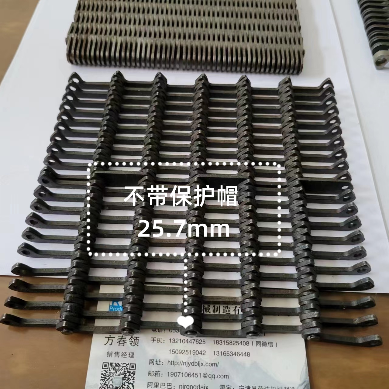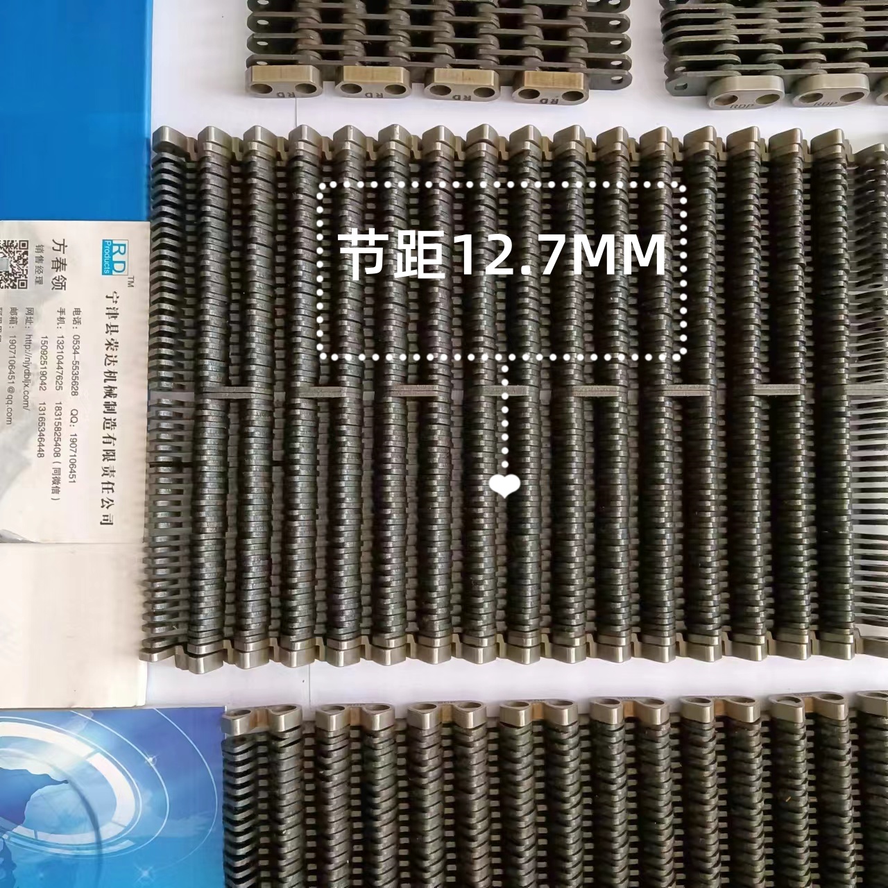 1.無(wú)聲齒形鏈帶:一種金屬輸送帶,采用鏈條片和銷軸于墊圈做成的輸送用傳送帶,外形寬度非標(biāo)定做也有好多規(guī)格的現(xiàn)貨,鏈帶是用在玻璃廠輸送玻璃瓶罐器皿日用玻璃器皿的,也有的時(shí)候用在其他的輸送機(jī)械上,用來(lái)輸送其他產(chǎn)品,無(wú)聲齒形鏈帶的優(yōu)點(diǎn)就是平整,輸送面平穩(wěn),輸送高腳杯,不會(huì)倒瓶,無(wú)聲齒形鏈帶用來(lái)輸送高溫玻璃制品,用于玻璃機(jī)械行列式制瓶機(jī)上,橫向輸瓶機(jī),我們現(xiàn)在還研發(fā)了轉(zhuǎn)彎的拐彎的無(wú)聲齒形鏈帶,用于縱向拐彎?rùn)M向結(jié)合的輸送機(jī)上。無(wú)聲齒形鏈帶材質(zhì)有碳鋼的 錳鋼的 合金鋼的 ,節(jié)距有12.7毫米 25.4毫米 單軸的和雙軸的,無(wú)齒形鏈帶從外形看有內(nèi)導(dǎo)向和外導(dǎo)向,無(wú)聲齒形鏈帶有帶保護(hù)帽的和不帶保護(hù)帽的,無(wú)聲齒形鏈帶有帶尖的和不帶尖的。寬度125毫米 150毫米 200毫米 300毫米 常年有現(xiàn)貨 當(dāng)天下單當(dāng)天發(fā)貨 配套的無(wú)聲齒形鏈輪有現(xiàn)貨 英文名稱Silent tooth chain ,顏色有發(fā)黑的有本色的。常規(guī)的是5米一件 五米一木箱 ,用于輸送機(jī)上一般是每分鐘15米左右